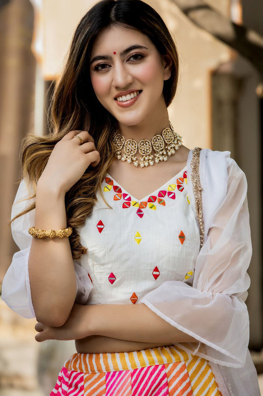 Premium white lehenga choli with embroidery for Eid Diwali