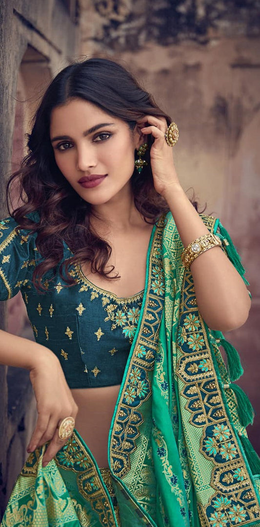 Trendy Teal Green Heavy Lehenga Choli with Banarasi Silk Dupatta