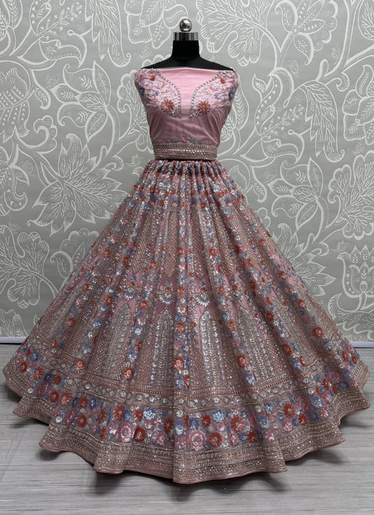 Light Pink Coding Embroidered Lehenga Choli for Weddings