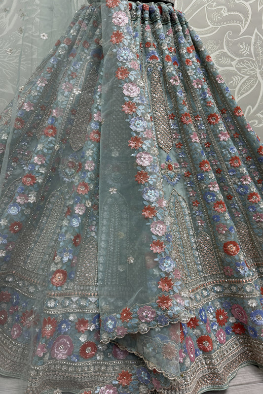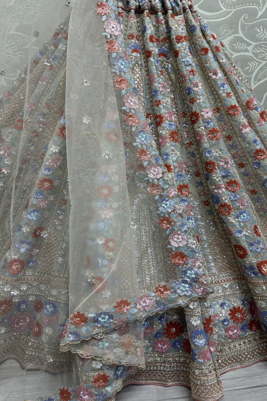 Gorgeous Indian Net Lehenga Choli with Floral Embroidery
