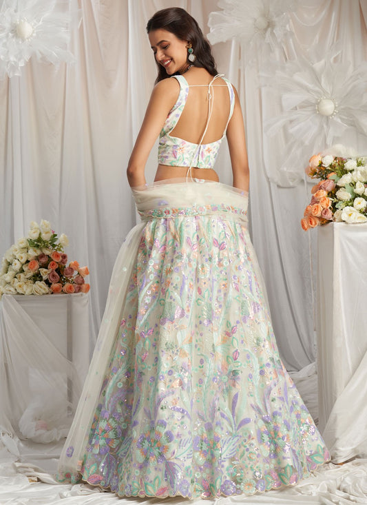 Multi Color Sequins Lehenga Suit with Net Dupatta