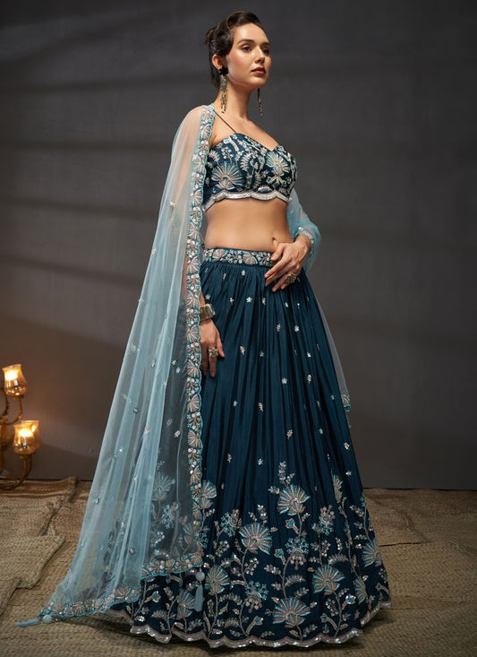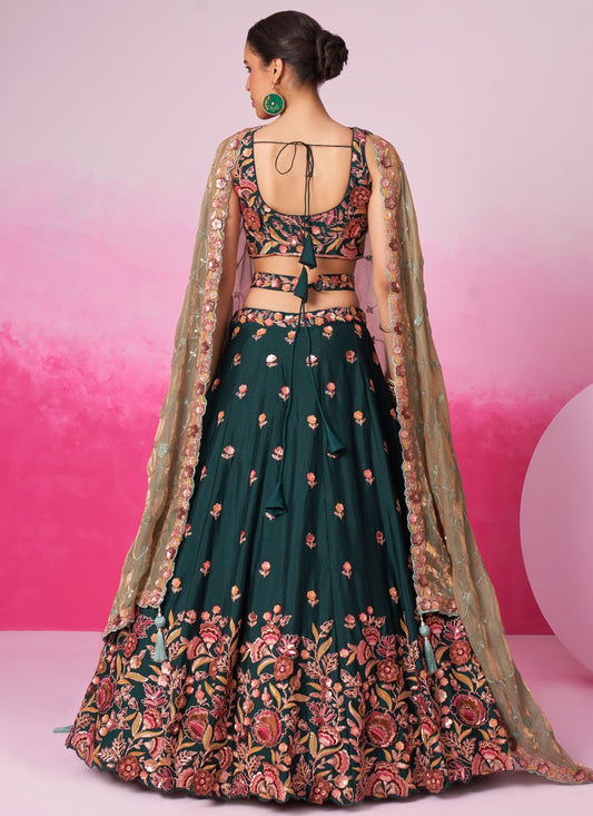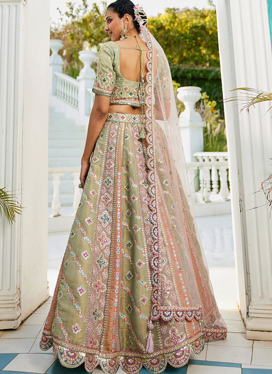 Pistachio Green Sequins Embroidered Lehenga Choli for Festivals