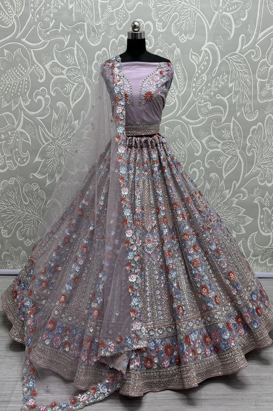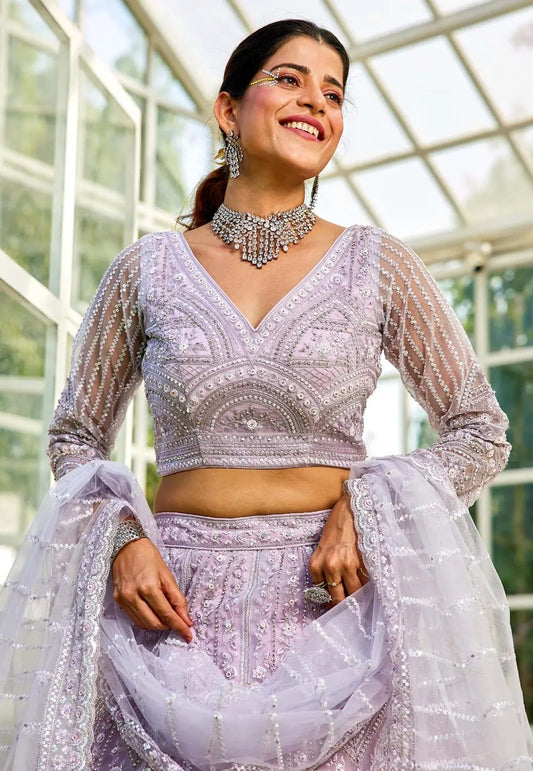 Lavender Net Embroidered Designer Ethnic Lehenga Choli