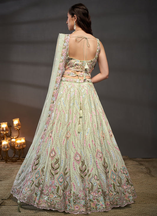 Pastel green net lehenga choli for special occasions and festivals