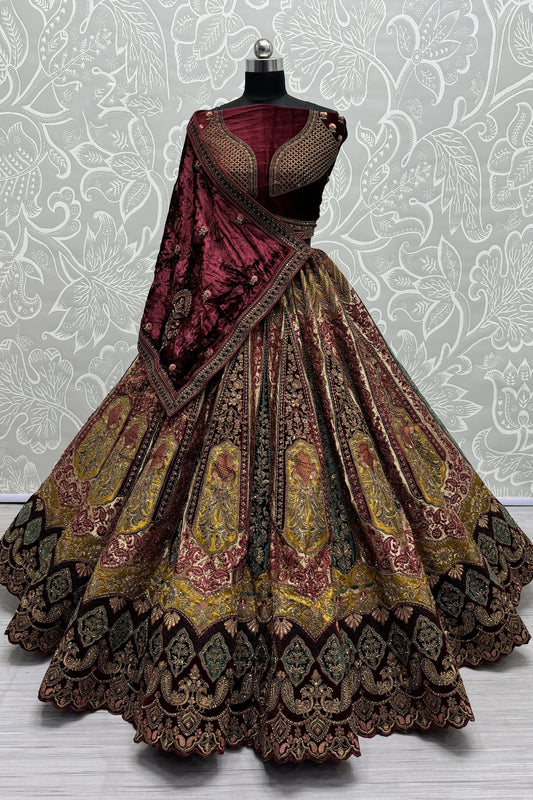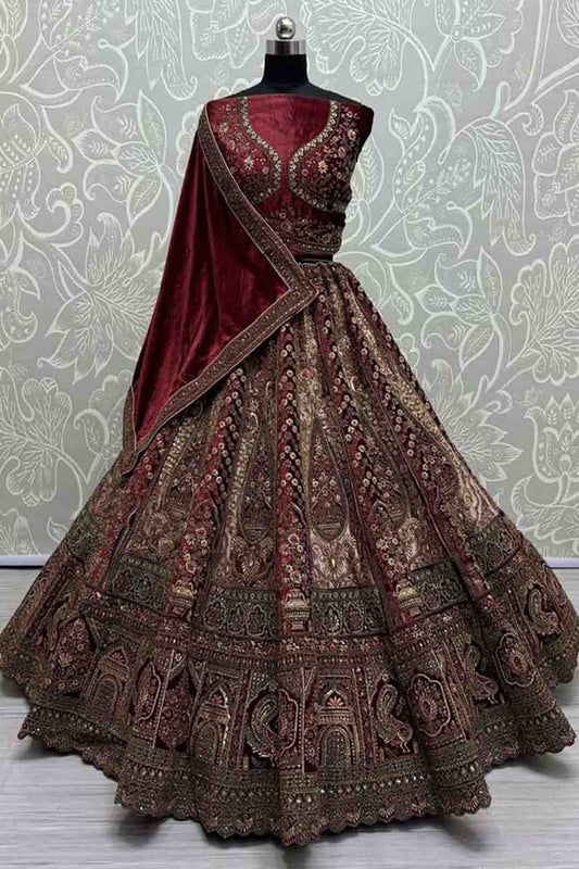 Charming burgundy lehenga with heavy sequins and velvet blouse