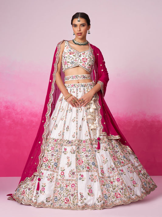 Floral Embroidered Designer Lehenga Choli with Net Dupatta