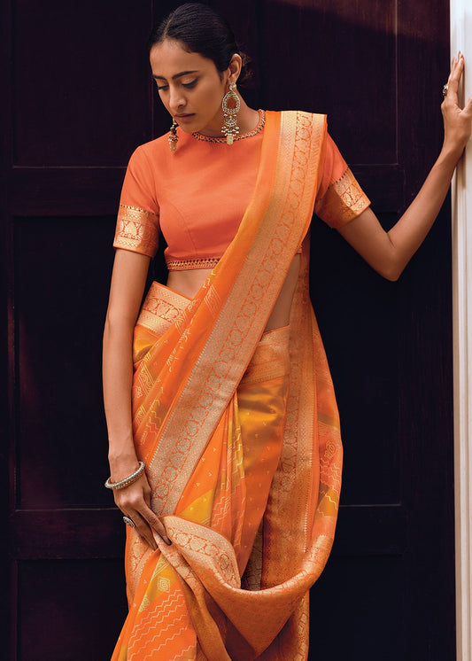 Orange Bandhani Printed Saree with Designer Viscose Blouse