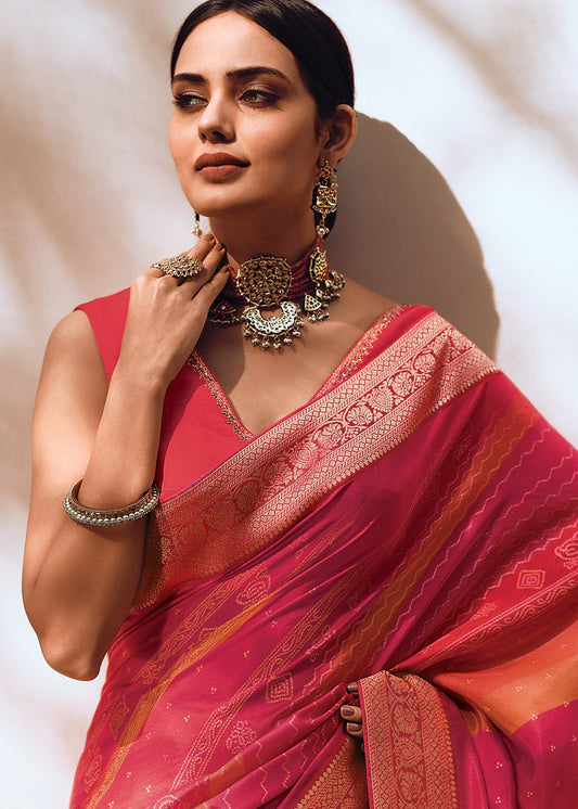 Pink Bandhani Printed Saree with Satin Silk Blouse for Events