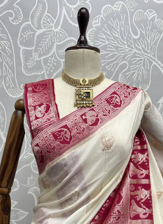 White Color Silk Designer Woven Work Wedding Wear Saree With Blouse