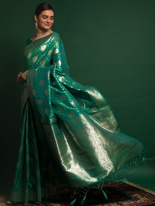 Gorgeous Green Silk Saree with Traditional Zari Woven Work