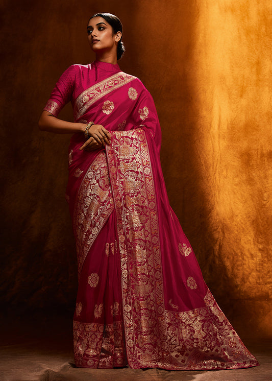 Designer Pink Color Silk Fabric Woven Work Saree For Occasion Special