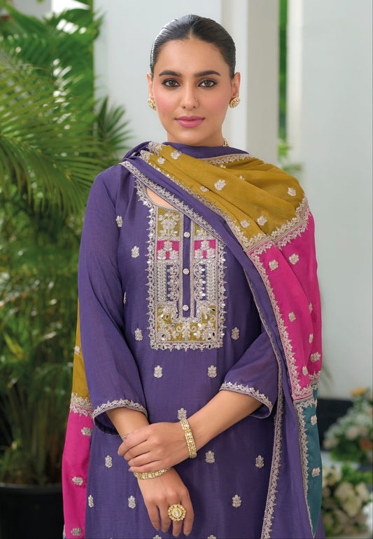 Purple Salwar Kameez Set Embroidered Pakistani Indian Suit