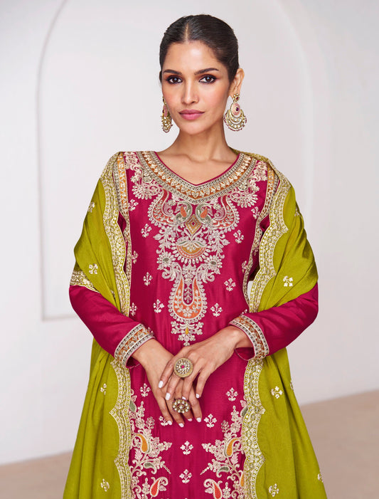 Stylish Dark Pink Embroidered Vibrant Salwar Kameez for Wedding