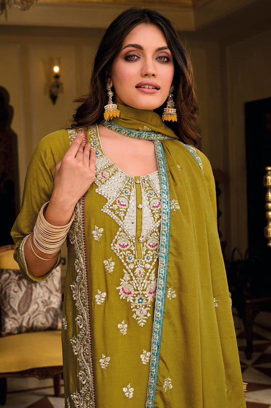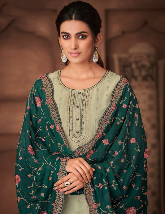Wedding-Party Style Green Colour Palazzo Dress With Dupatta