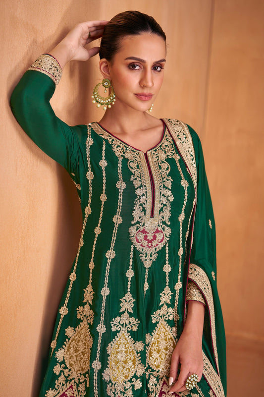 Heavy Embroidery Green Traditional Salwar Kameez For Indian Wedding