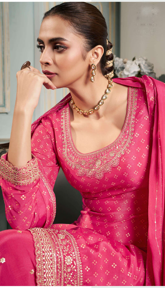 Punjabi Wedding Party Wear Embroidery Printed Work Palazzo Suits