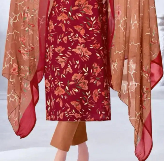 Wine Color printed Shalwar Kameez suit For Party And Everyday Wear