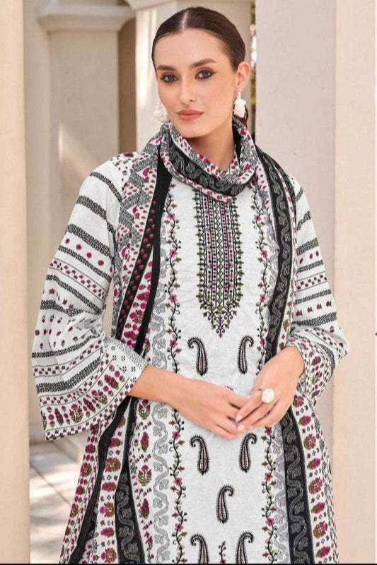 White Color Pure cotton Wear shalwar Kameez With Beautiful Design Work