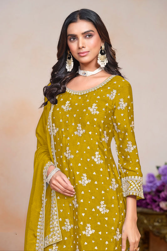 Real yellow chinnon silk INDIAN-PAKISTANI party wear salwar kameez
