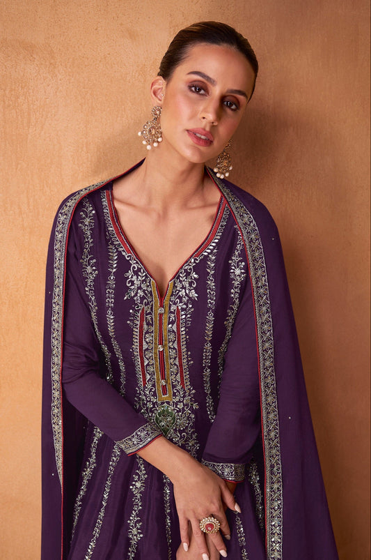 Purple color Party Wear Beautiful Shalwar Kameez palazzo suits