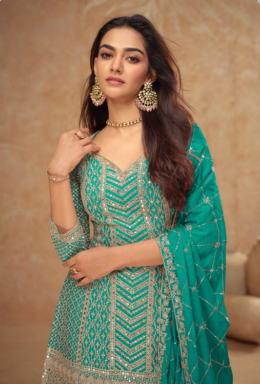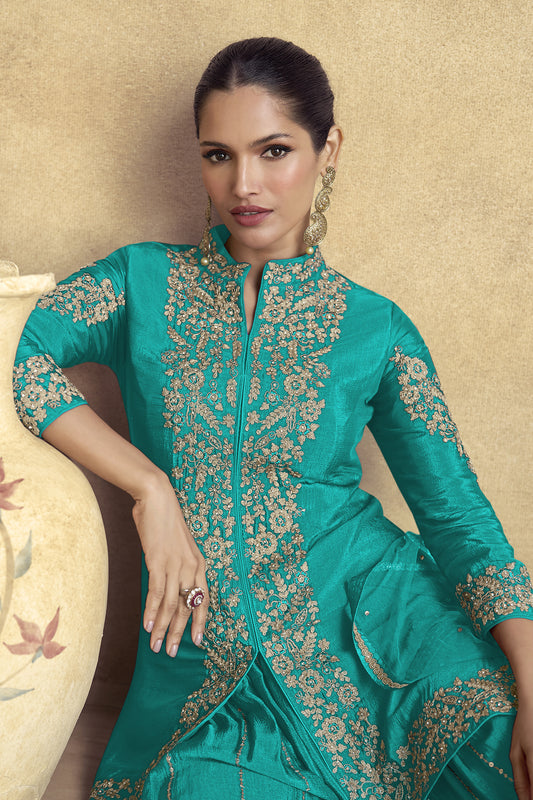 Exclusive Teal Salwar Kameez Palazzo with Dupatta Suit for USA Buyers