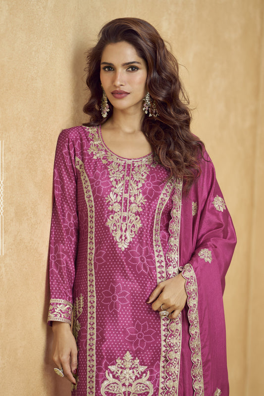 Dark Pink Salwar Kameez Palazzo With Dupatta For Indian Functions