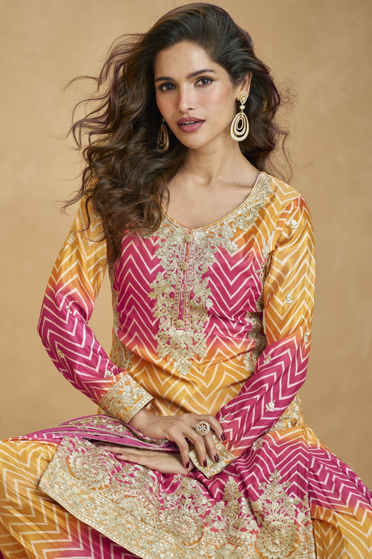 Pink and Yellow color Haldi Ceremony Beautiful Shalwar plazo suits