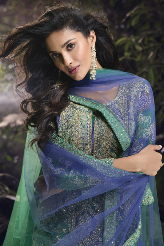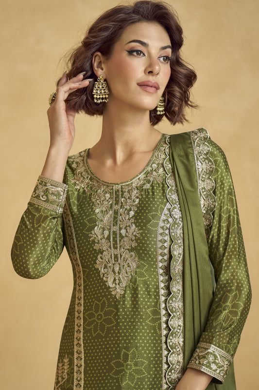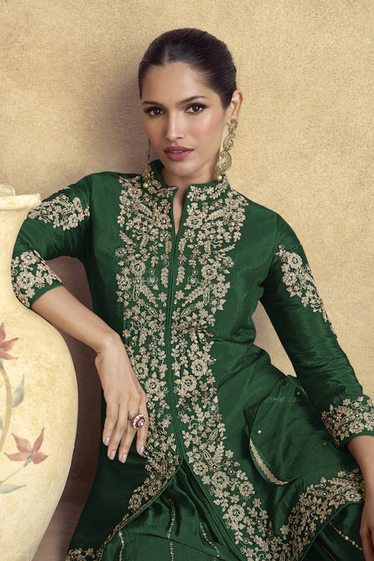 Premium Green Color Salwar Kameez Palazzo Suit For Special Occasion