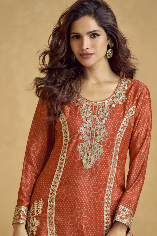 Dark Orange color Haldi Ceremony Wear Beautiful Shalwar palazzo
