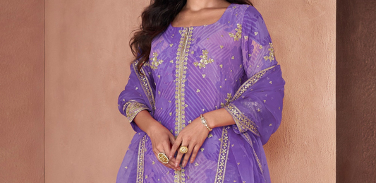 Stylish Purple Ready-to-Wear Indian Ethnic Luxury Palazzo with Dupatta