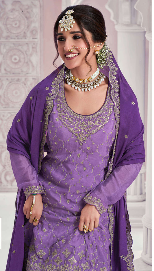 Elegant Purple Silk Palazzo Dress for Readymade Suit