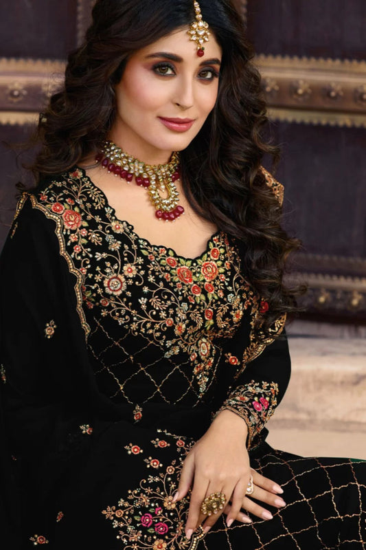 Black Stone Work Plus Size Traditional Salwar Kameez For Parties