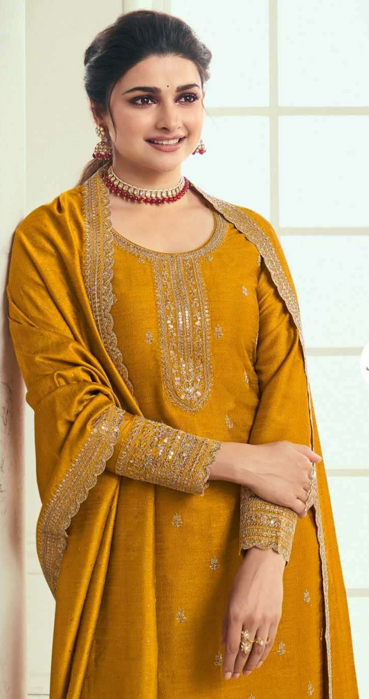 Yellow Indian Ethnic Embroidered Designer Palazzo Dress with Dupatta