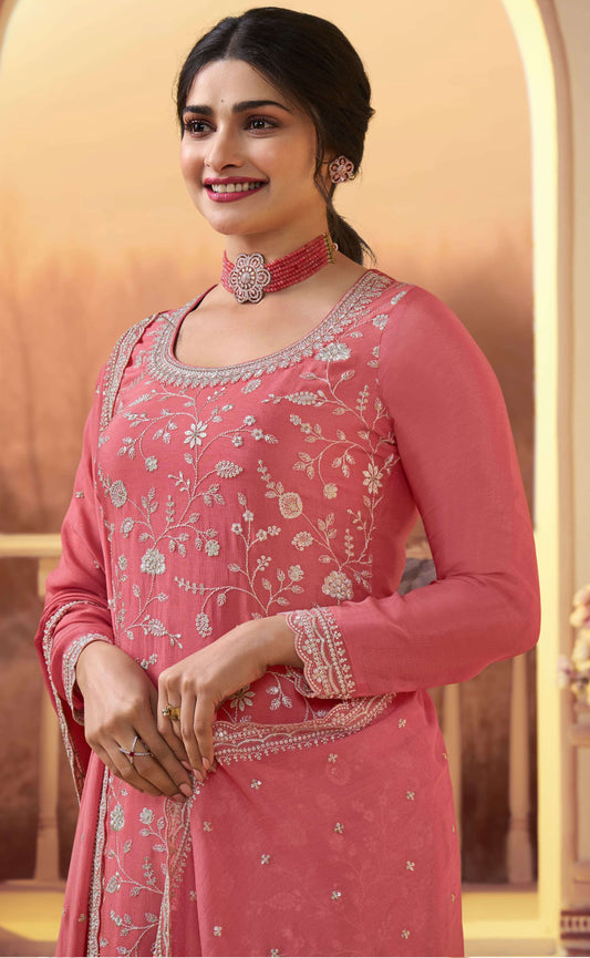 Pink Thread Embroidered Designer Salwar Kameez Palazzo with Dupatta