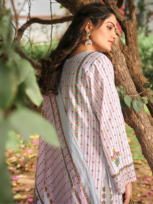 Summer Cotton Salwar Suit with Embroidery and Lawn Dupatta