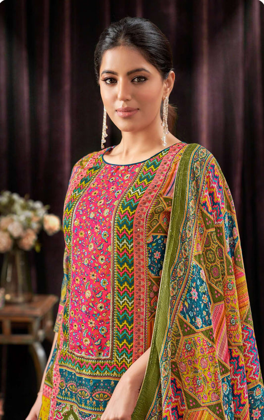 Gorgeous Digital Printed With Embroidery Work Salwar Kameez Pant Suit