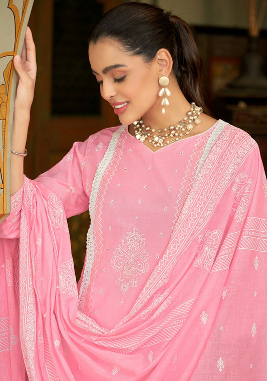 Pink Designer Cotton Salwar Suit with Heavy Digital Print Dupatta