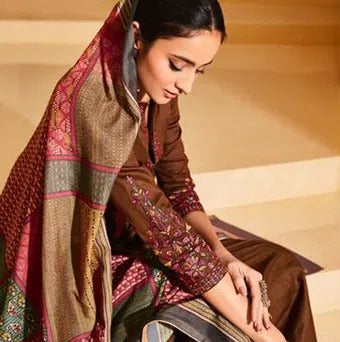 Pakistani Designer Satin Salwar Suit with Embroidery Work
