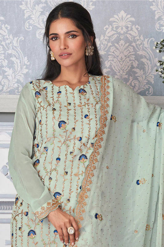 Indian Festival Designer Organza Fabric With Embroidered Salwar Suit