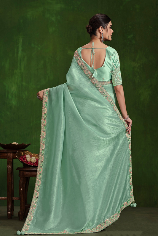 Sea Green Designer Silk Fabric Women's Wear Saree