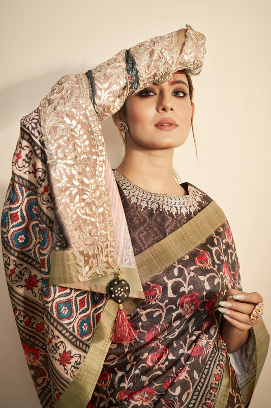 Gorgeous Designer Flower Print Silk Saree for Wedding Function