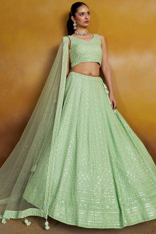 New Pista Embroidery Work Lehenga For Special Marriage-Function