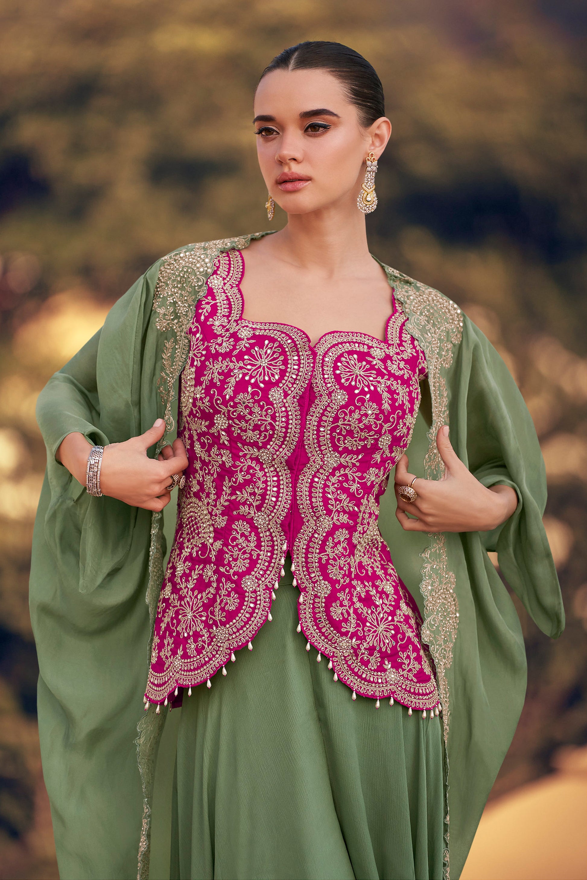 Stylish Designer Sage Green Western Wear Premium Silk Suit With Dupatta