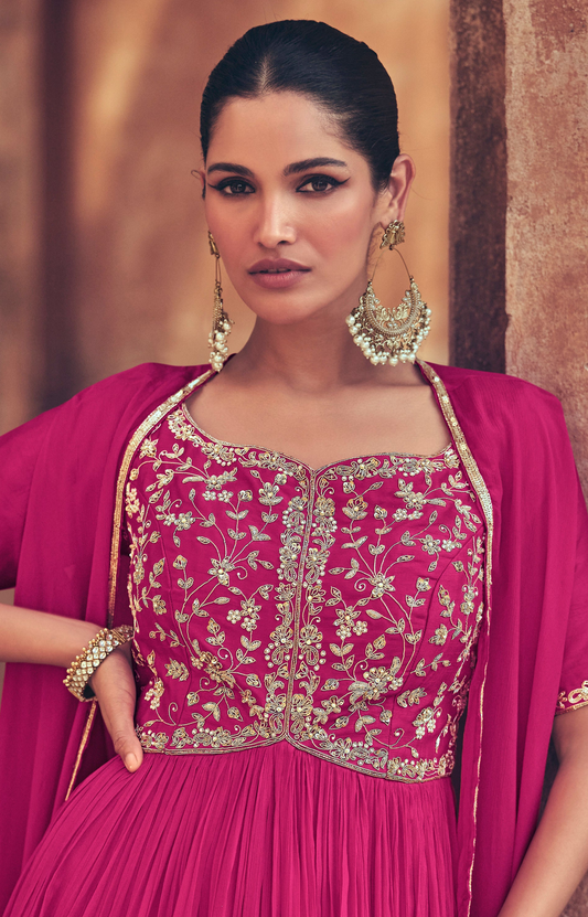 Pink Wedding Anarkali Dupatta Gown Reception Party Wear Suit