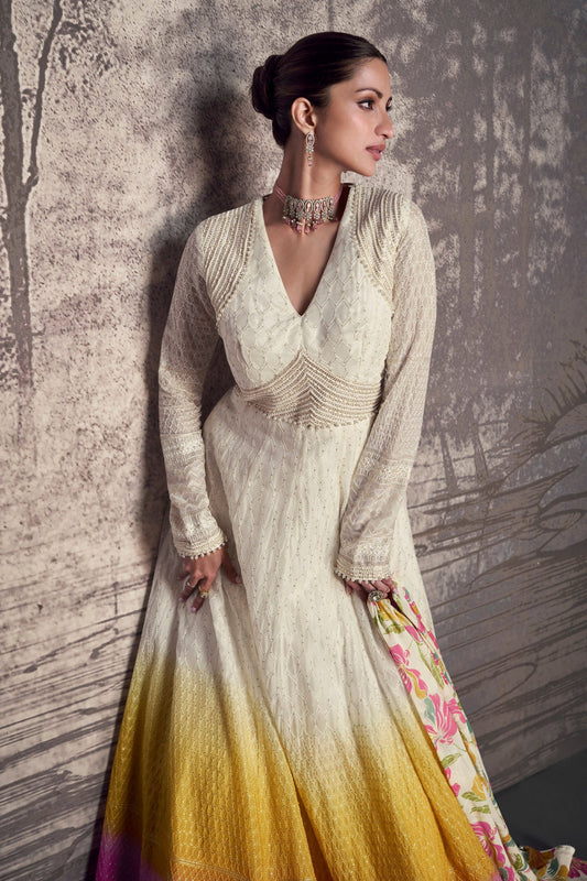 White Anarkali Gown For Eid-Ramadan Special Party Wear Suit