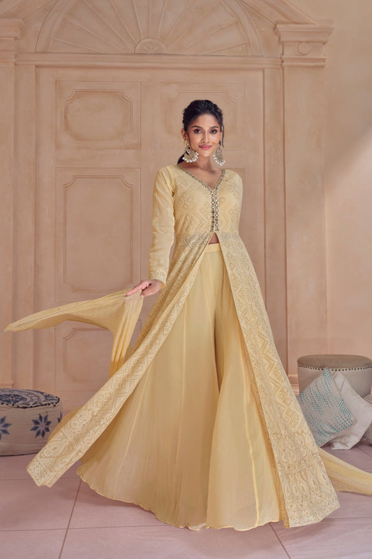 Beige Anarakali Gown Georgette Dupatta Suit for Her Women's