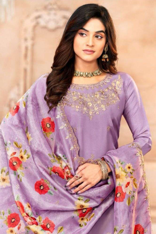 Cotton Salwar Kameez In Lavender With Digital Print