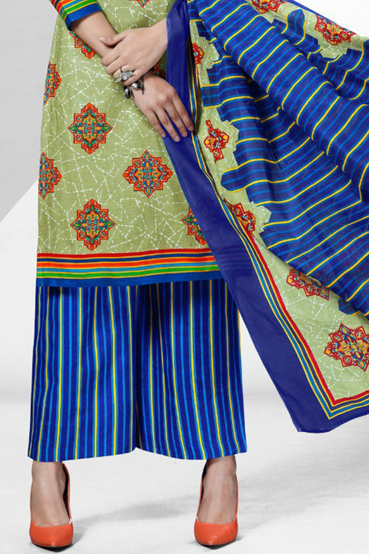 Green Salwar Kameez In Cotton Bandhani Style
