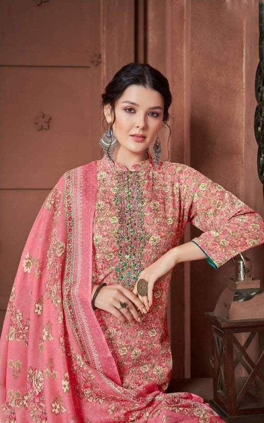 Baby Pink Salwar Kameez In Pure Cotton With Embroidered Detail