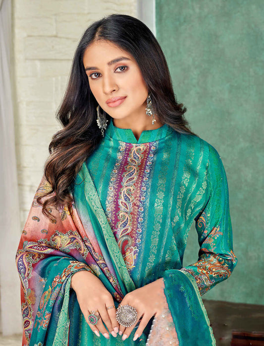 Beautiful Green Salwar In Viscose Jacquard Digital Print